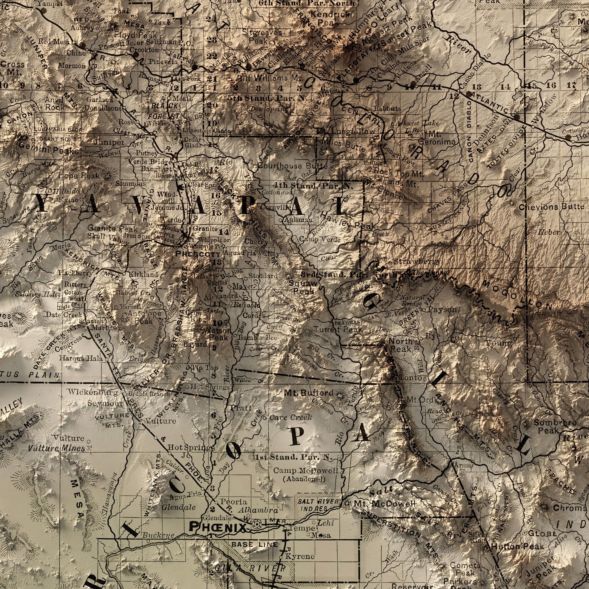 Arizona Elevation Map | 1893 Vintage Topographic Reproduction