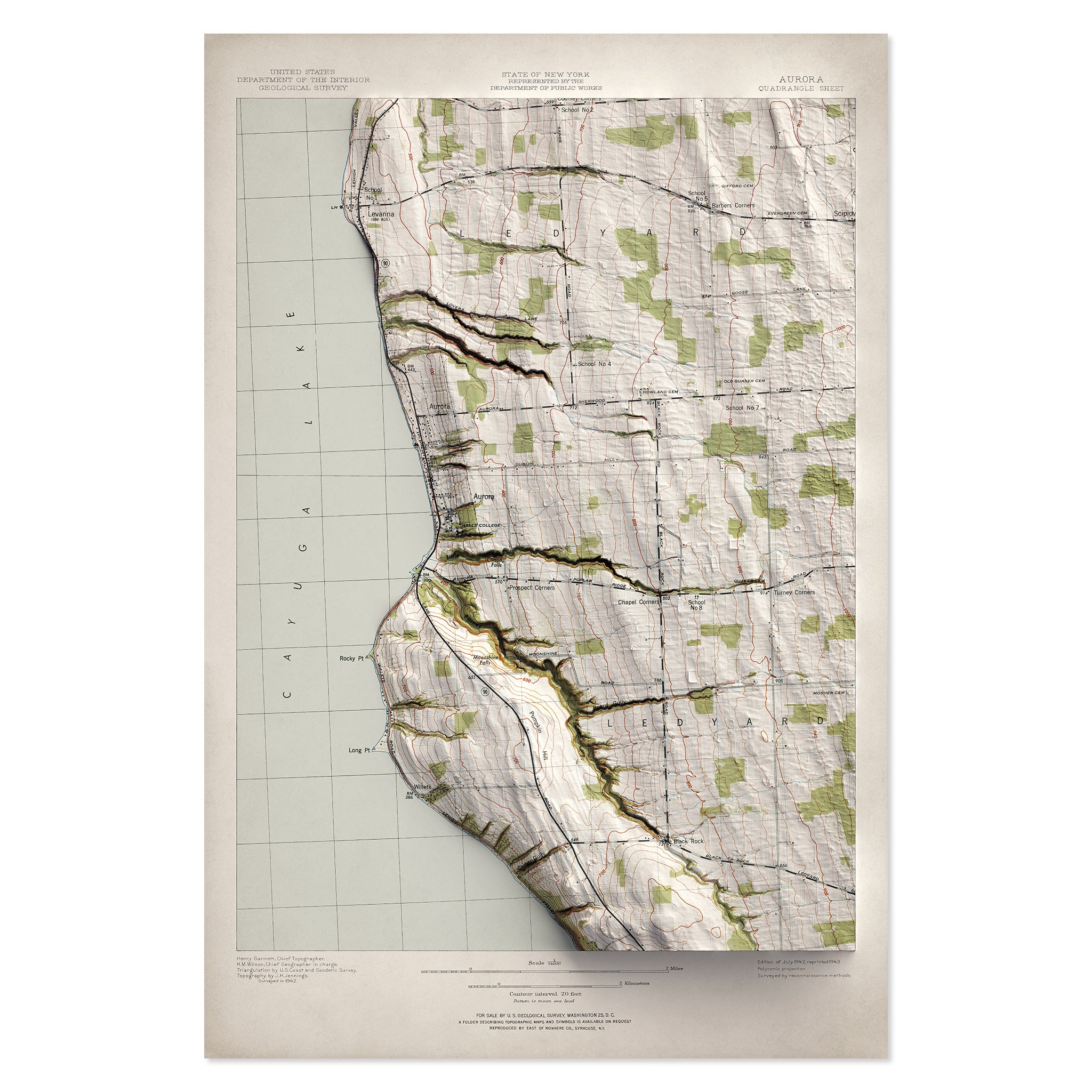 Aurora, NY Elevation Map | 1942 Vintage Topographic Reproduction