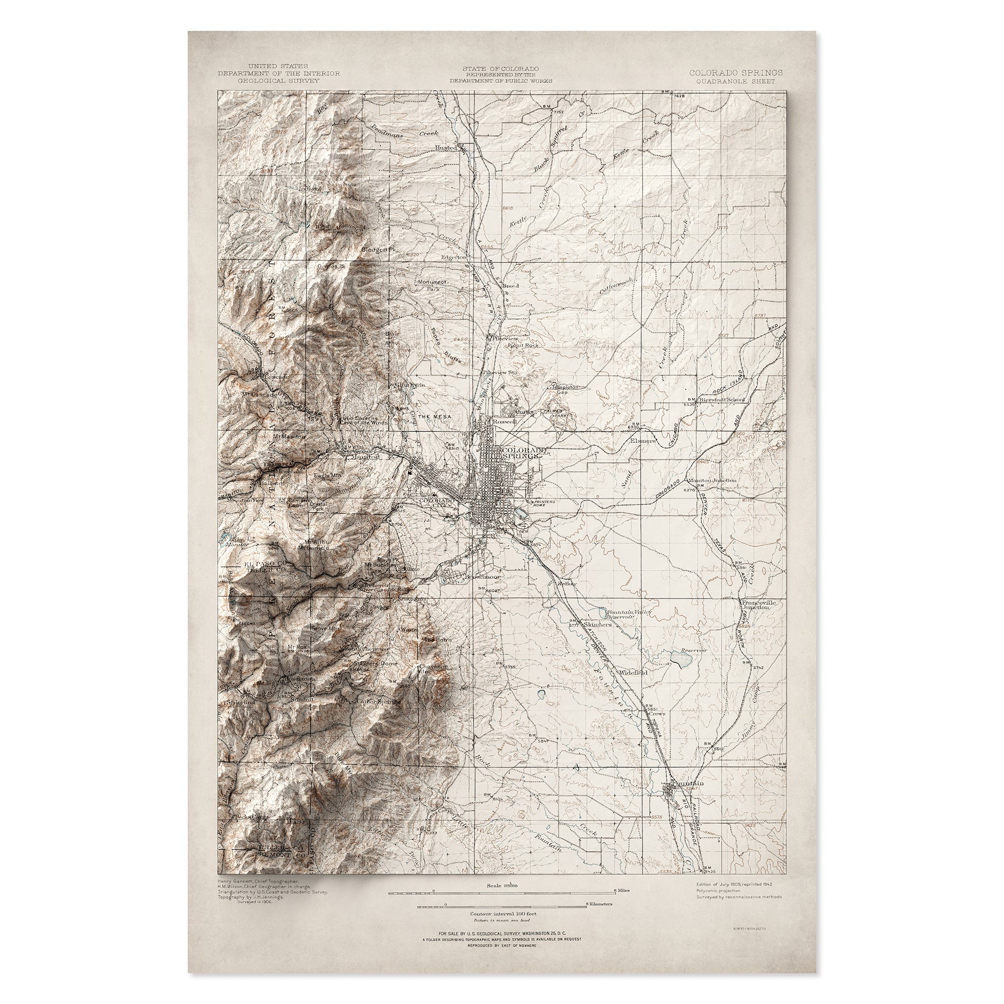 Colorado Springs, CO Elevation Map | 1909 Vintage Topographic Reproduction