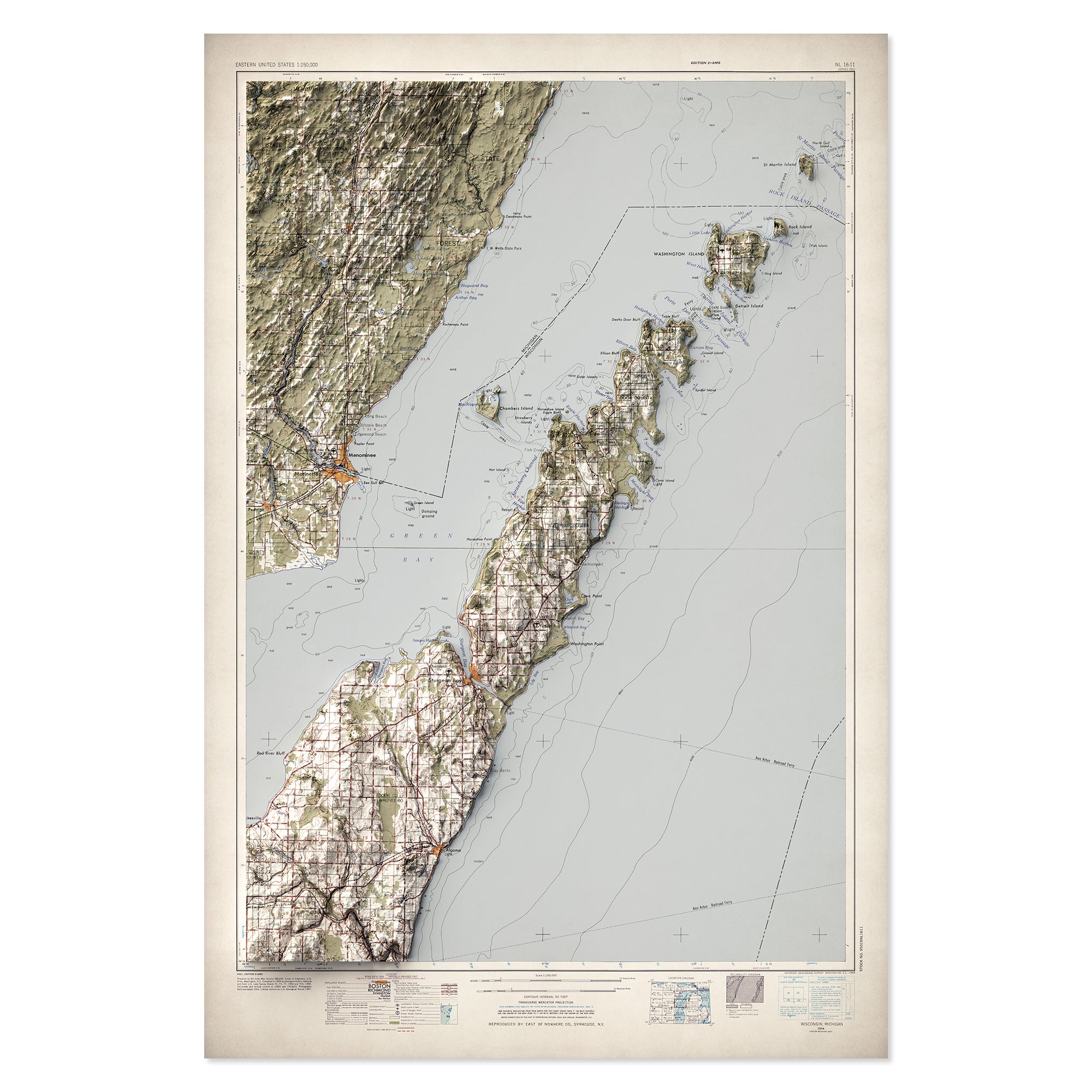Door County, WI Elevation Map | 1954 Vintage Topographic Reproduction