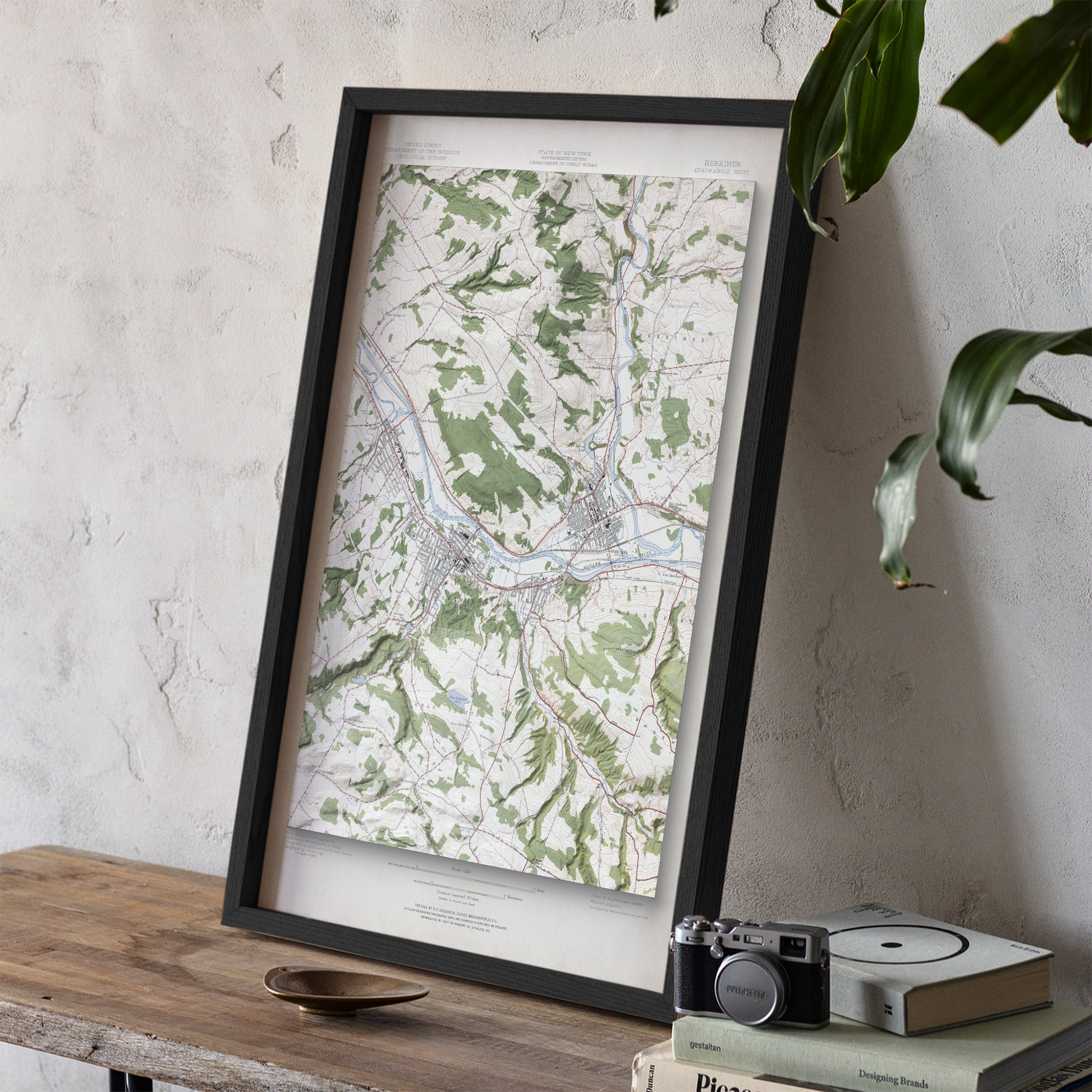Discover our vintage elevation map posters, authentic reproduction of historic map prints enhanced with modern techniques like colorization and 3D rendering. These giclee art prints feature a stunning optical illusion that mimics raised terrain, creating the look of real topography on your wall. Printed on archival-quality paper, each relief map blends classic cartography with contemporary design, making it perfect for framing as wall art or adding a distinctive touch to your home decor.