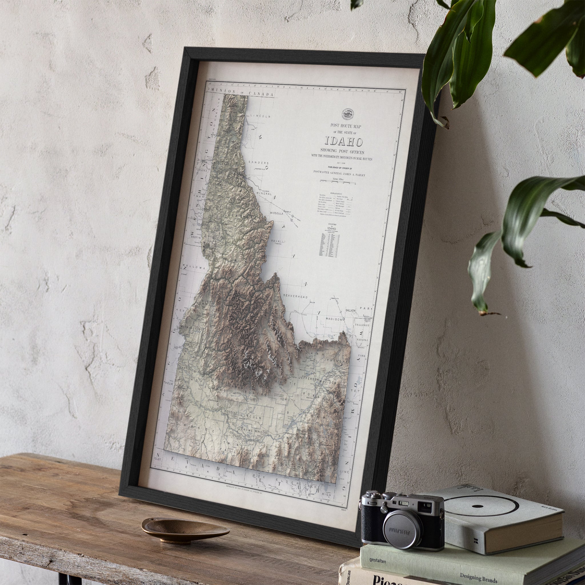 Discover our vintage elevation map posters, authentic reproduction of historic map prints enhanced with modern techniques like colorization and 3D rendering. These giclee art prints feature a stunning optical illusion that mimics raised terrain, creating the look of real topography on your wall. Printed on archival-quality paper, each relief map blends classic cartography with contemporary design, making it perfect for framing as wall art or adding a distinctive touch to your home decor.