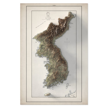 Korea Elevation Map | 1913 Vintage Topographic Reproduction
