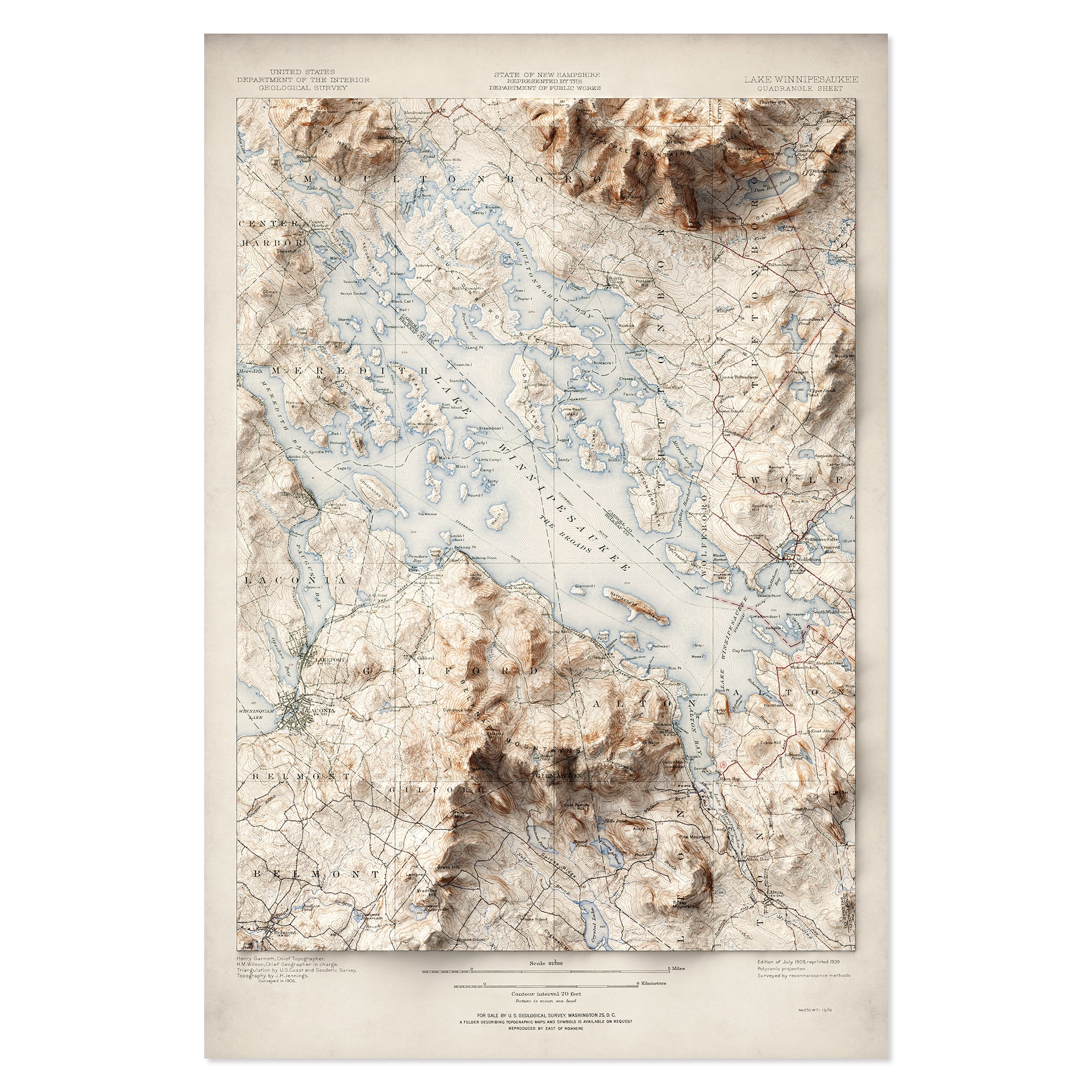 Lake Winnipesaukee, NH Elevation Map | 1909 Vintage Topographic Reproduction