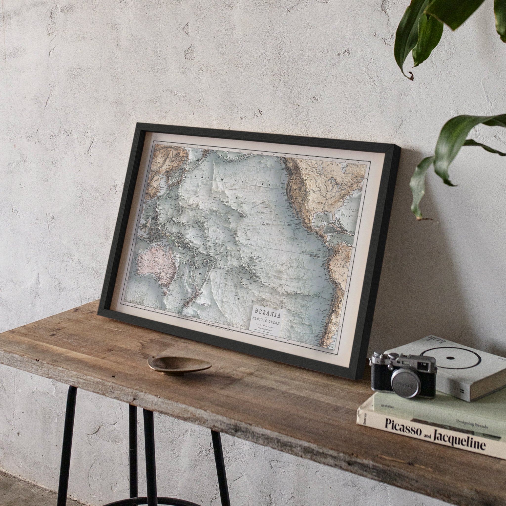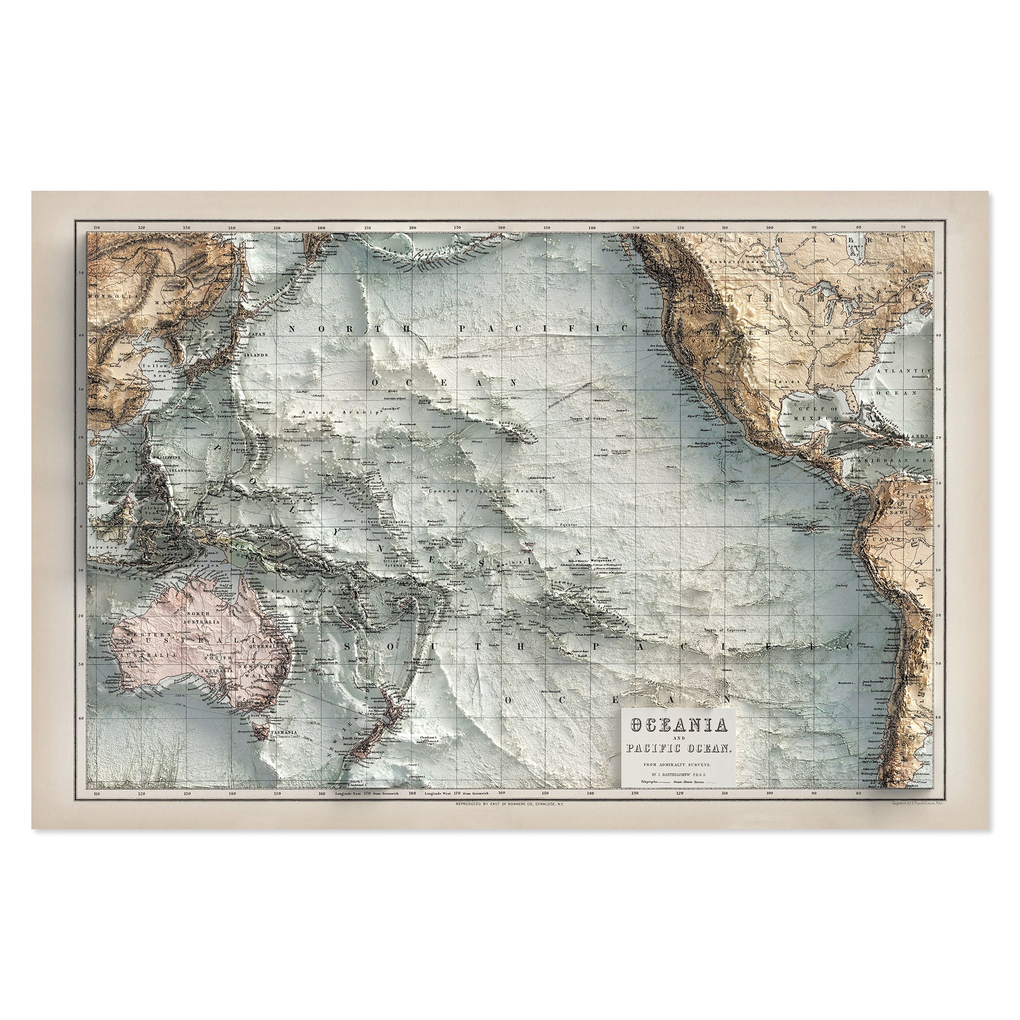 Pacific Ocean Elevation Map | 1884 Vintage Topographic Reproduction