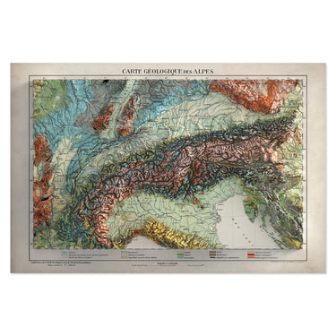 The Alps Elevation Map | 1921 Vintage Topographic Reproduction