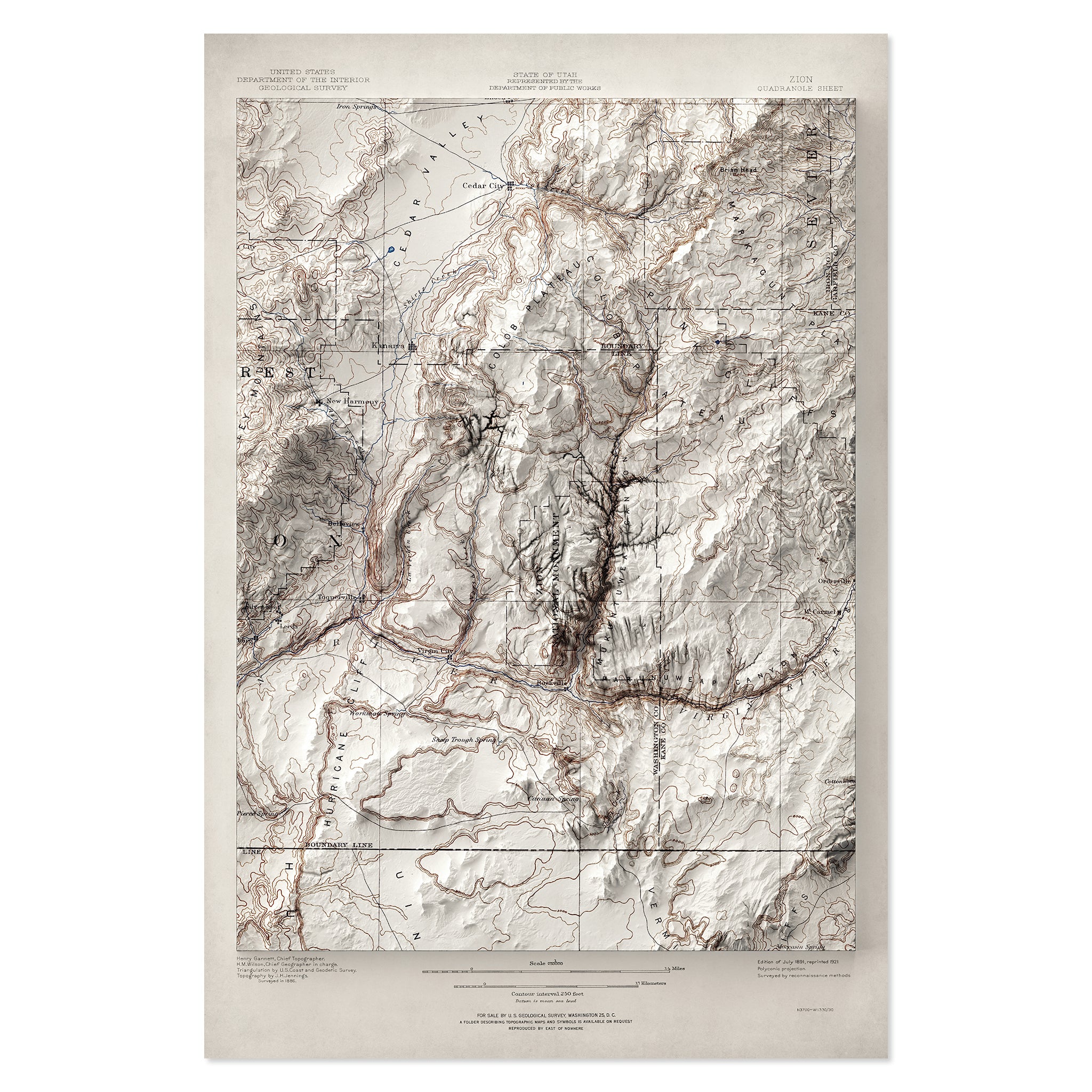 Zion National Park, UT Elevation Map | 1891 Vintage Topographic Reproduction